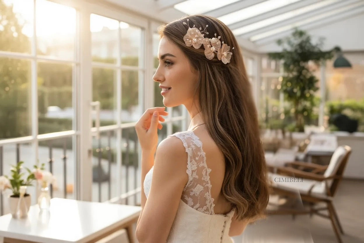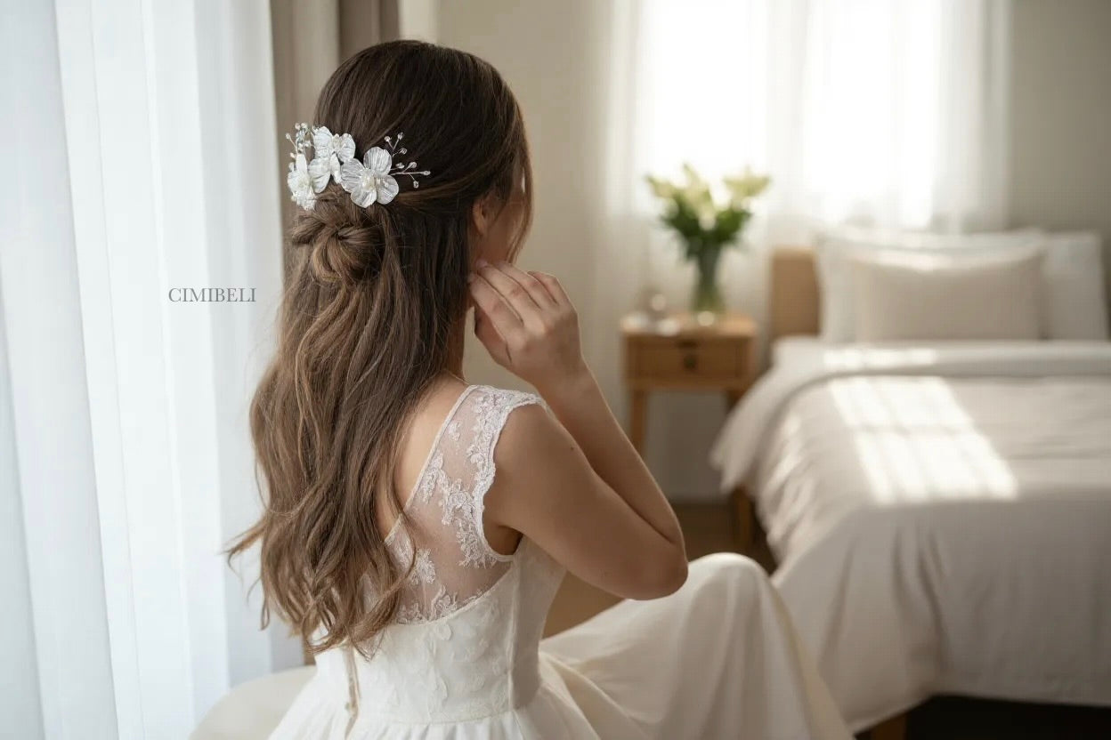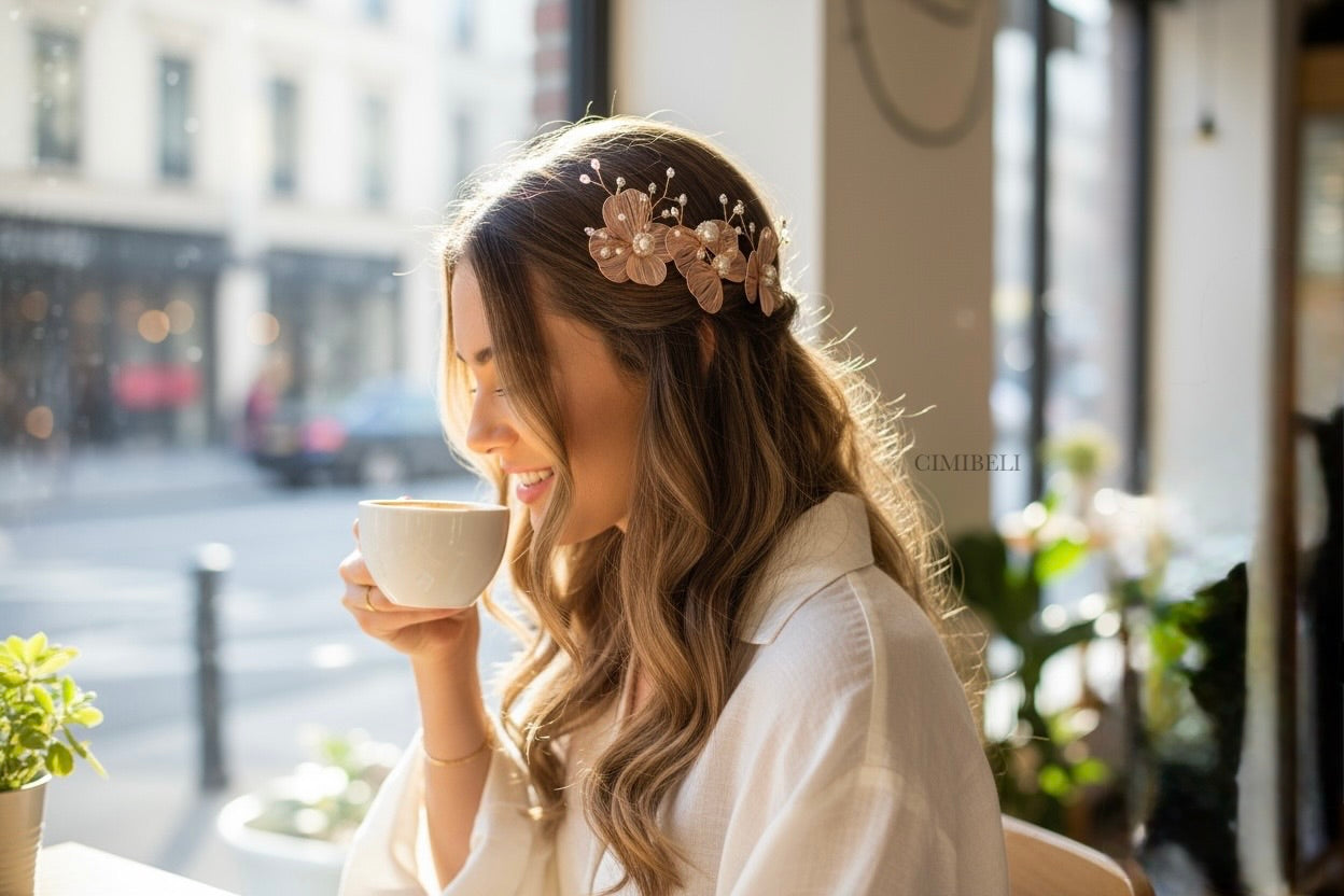 Apportez une touche romantique et raffinée à votre coiffure avec cet accessoire de cheveux délicatement travaillé à la main.