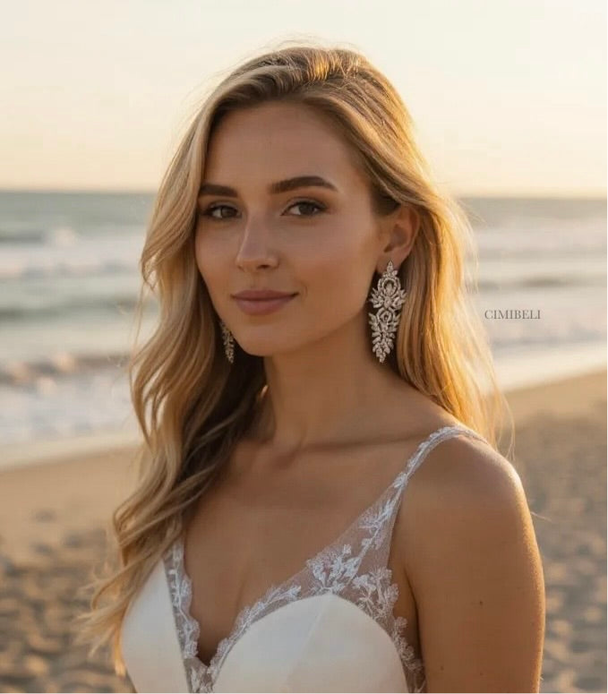 Élégantes et scintillantes, ces boucles d’oreilles pendantes subliment votre look bien au-delà du mariage. Faciles à assortir avec vos tenues modernes et raffinées, elles ajoutent une touche d’éclat à chaque occasion spéciale. Monture garantie sans nickel ni plomb.
