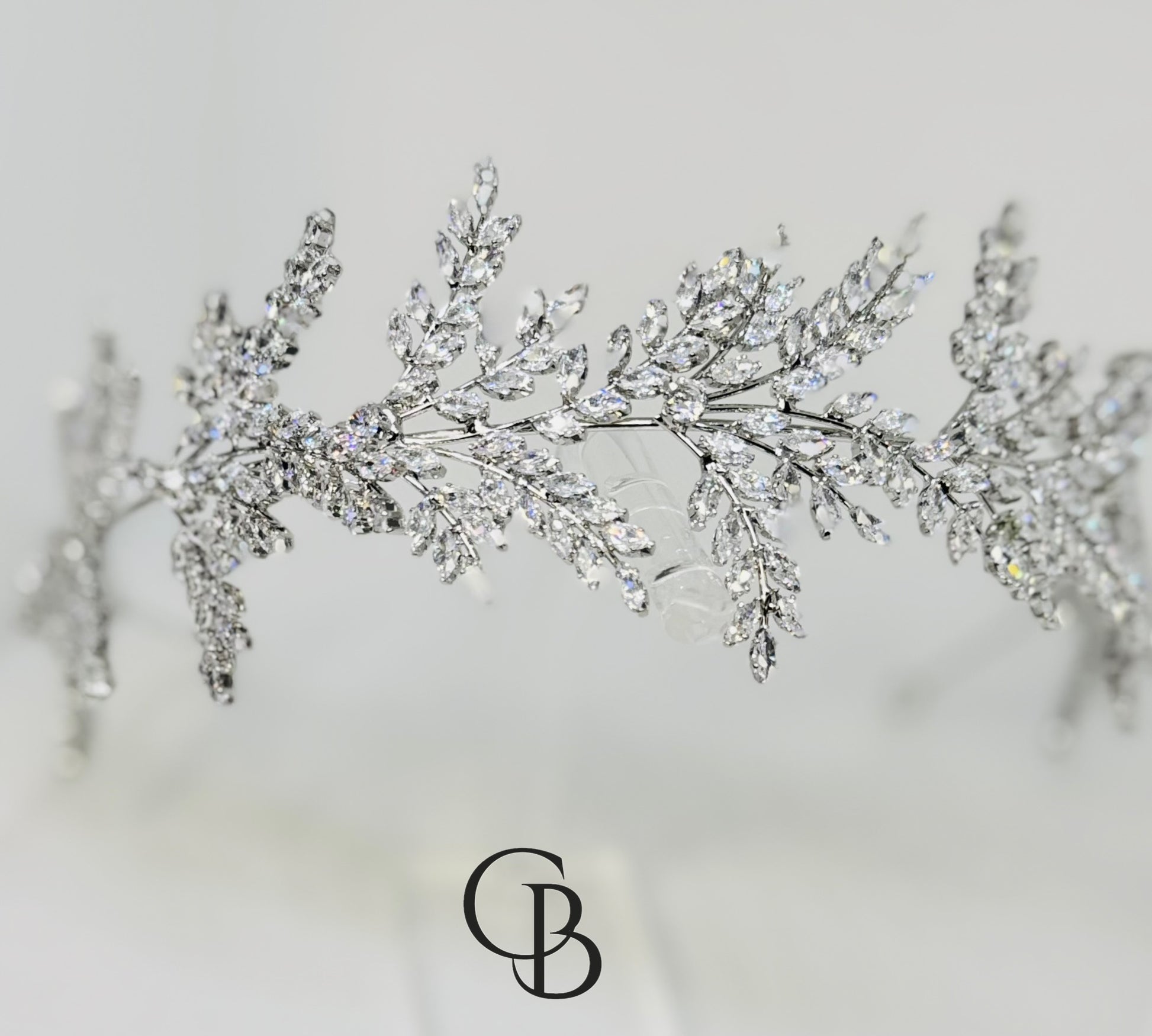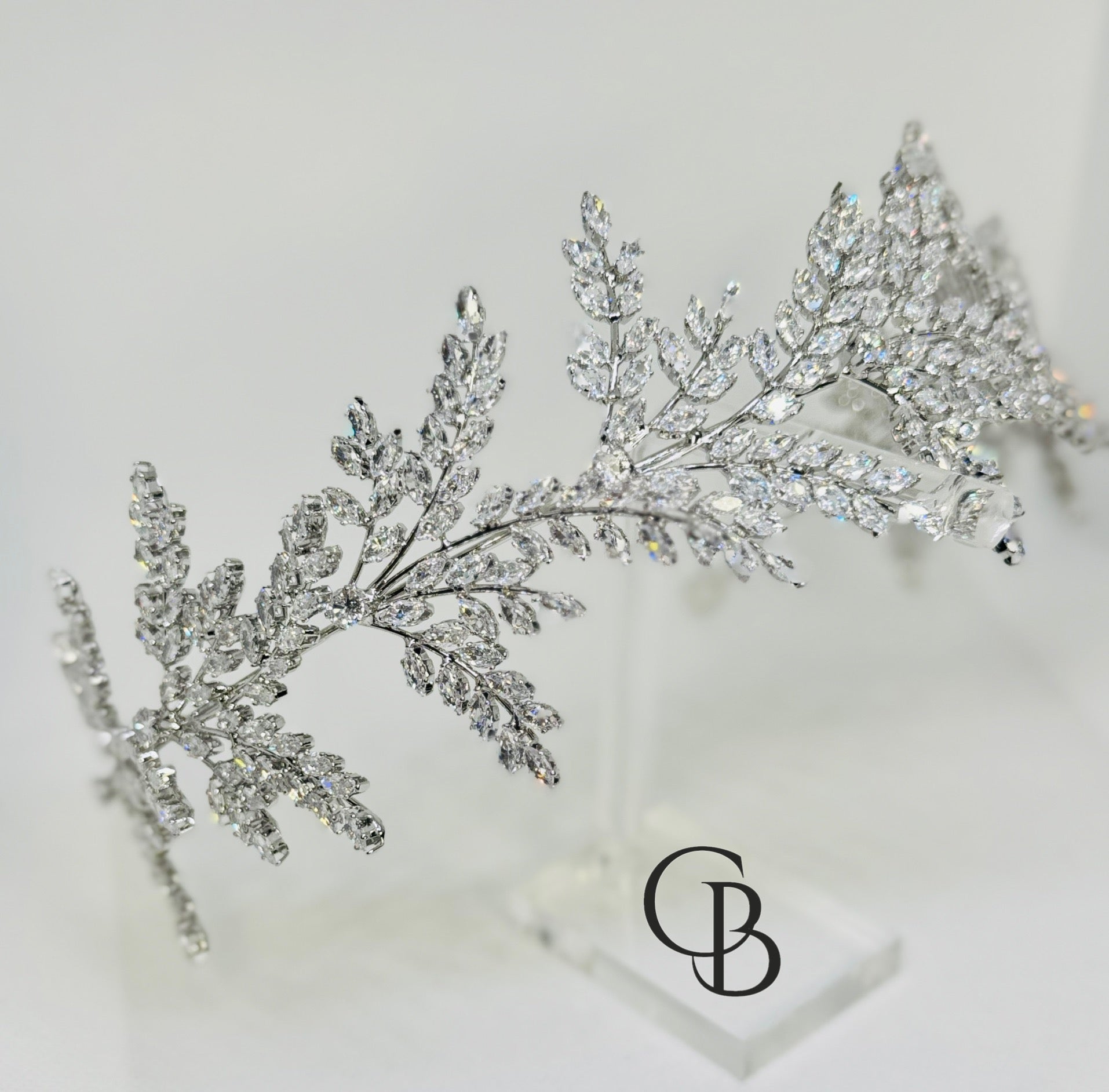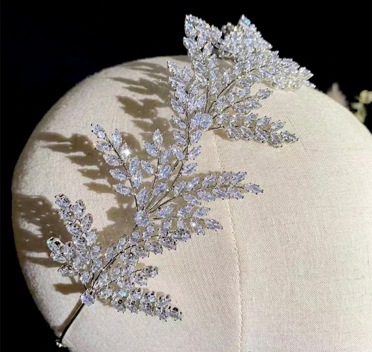 •Ce diadème est magnifiquement plaqué argent et incrusté de pierres de zirconium véritables et claires étincelantes de différentes tailles. •Les nombreux cristaux de zirconium font briller cette couronne dans n’importe quelle lumière et sont fixés par les mains!