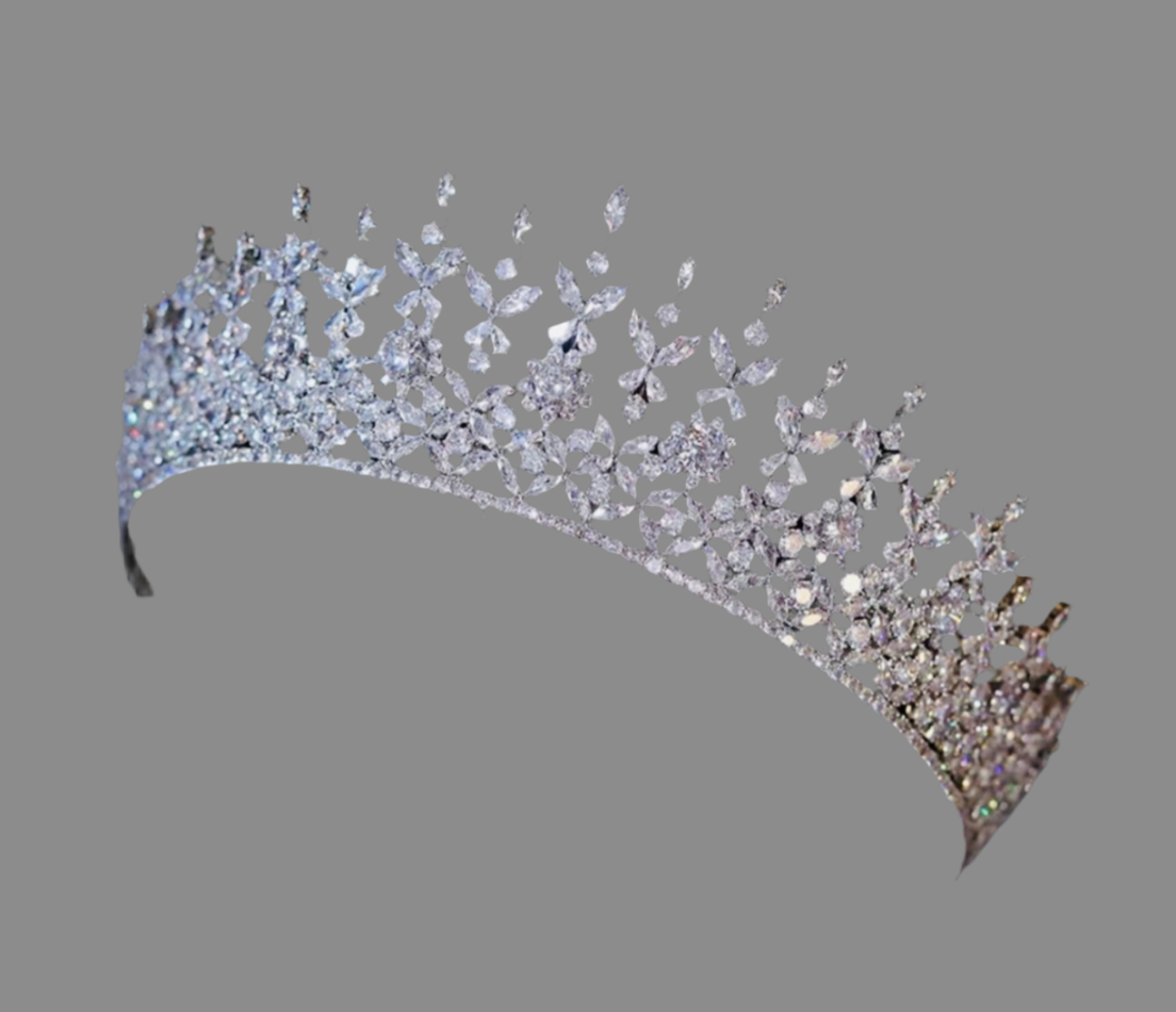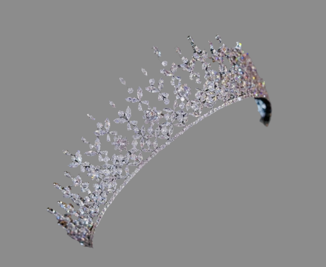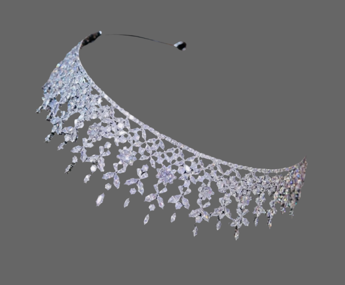 •Ce diadème est magnifiquement plaqué argent et incrusté de pierres de zirconium véritables et claires étincelantes de différentes tailles.