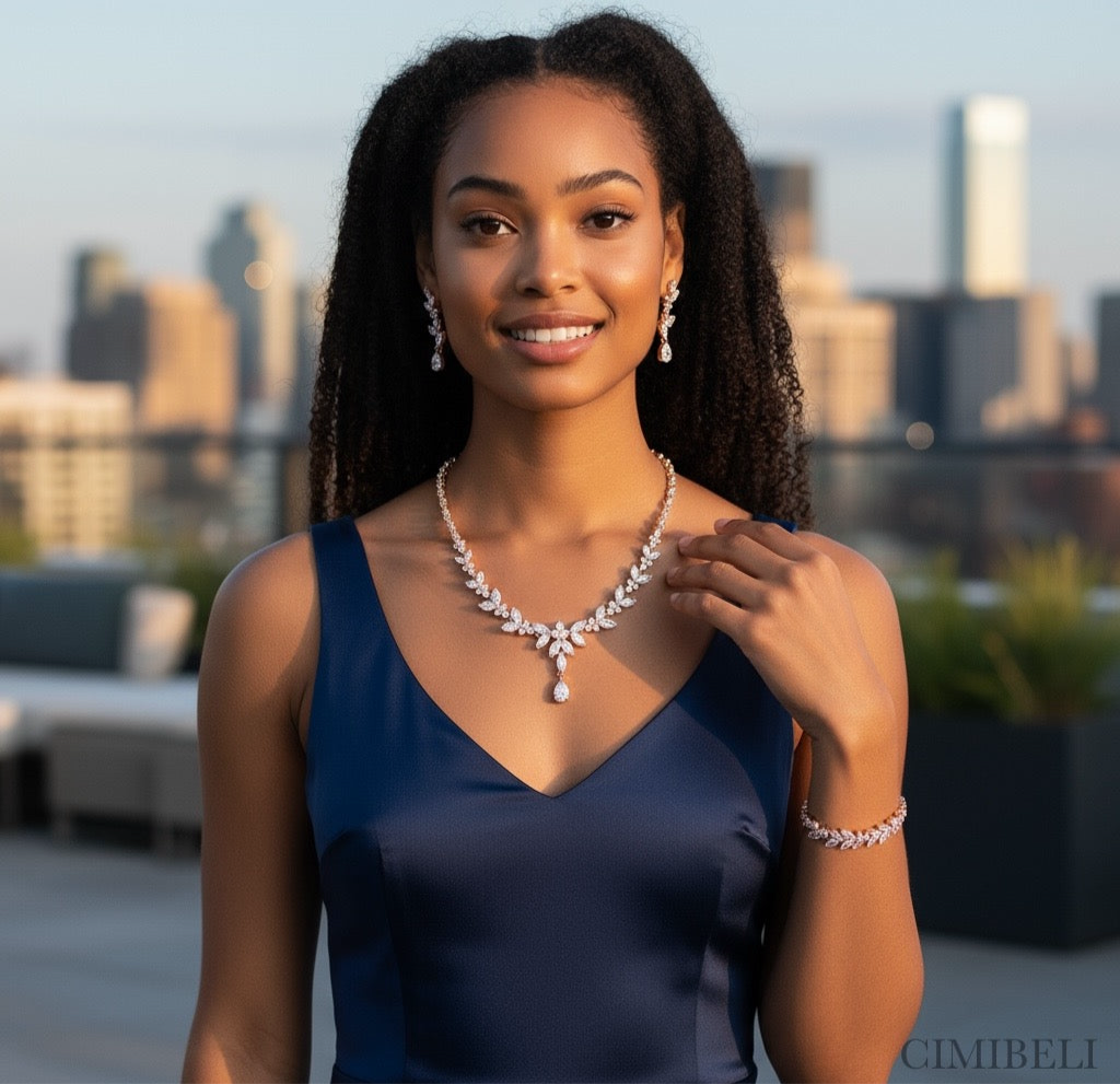 •Cet ensemble de mariée trois pièces "Anis" CIMIBELI sont fabriqués à la main. D’oxyde de zirconium AAA+( diamants simulé),Pierres, perles et métaux sont soigneusement sélectionnés par des maîtres joailliers pour vous offrir des bijoux hors du commun.