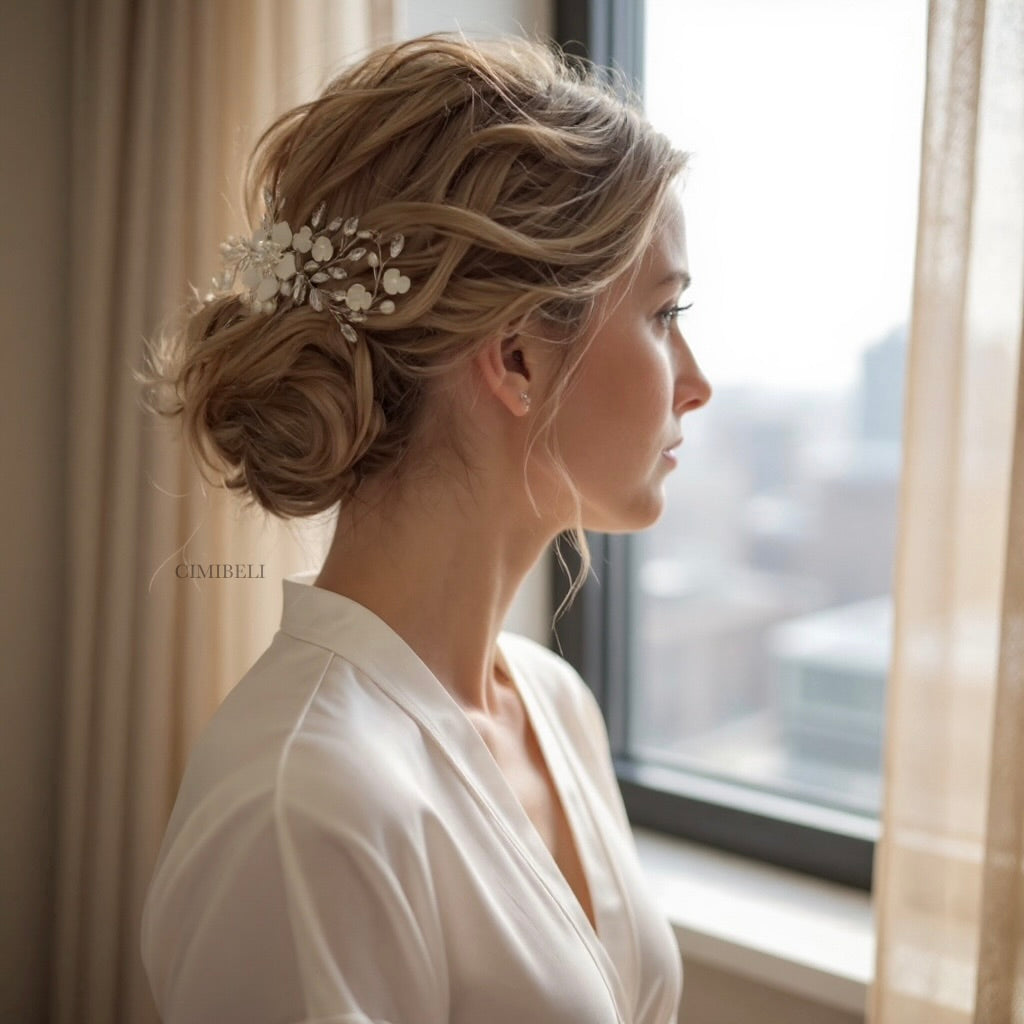 Élégance et luxe : Le peigne en cristal apporte une touche de luxe à votre coiffure de mariage, en mettant en valeur votre beauté naturelle.