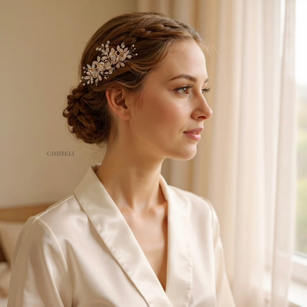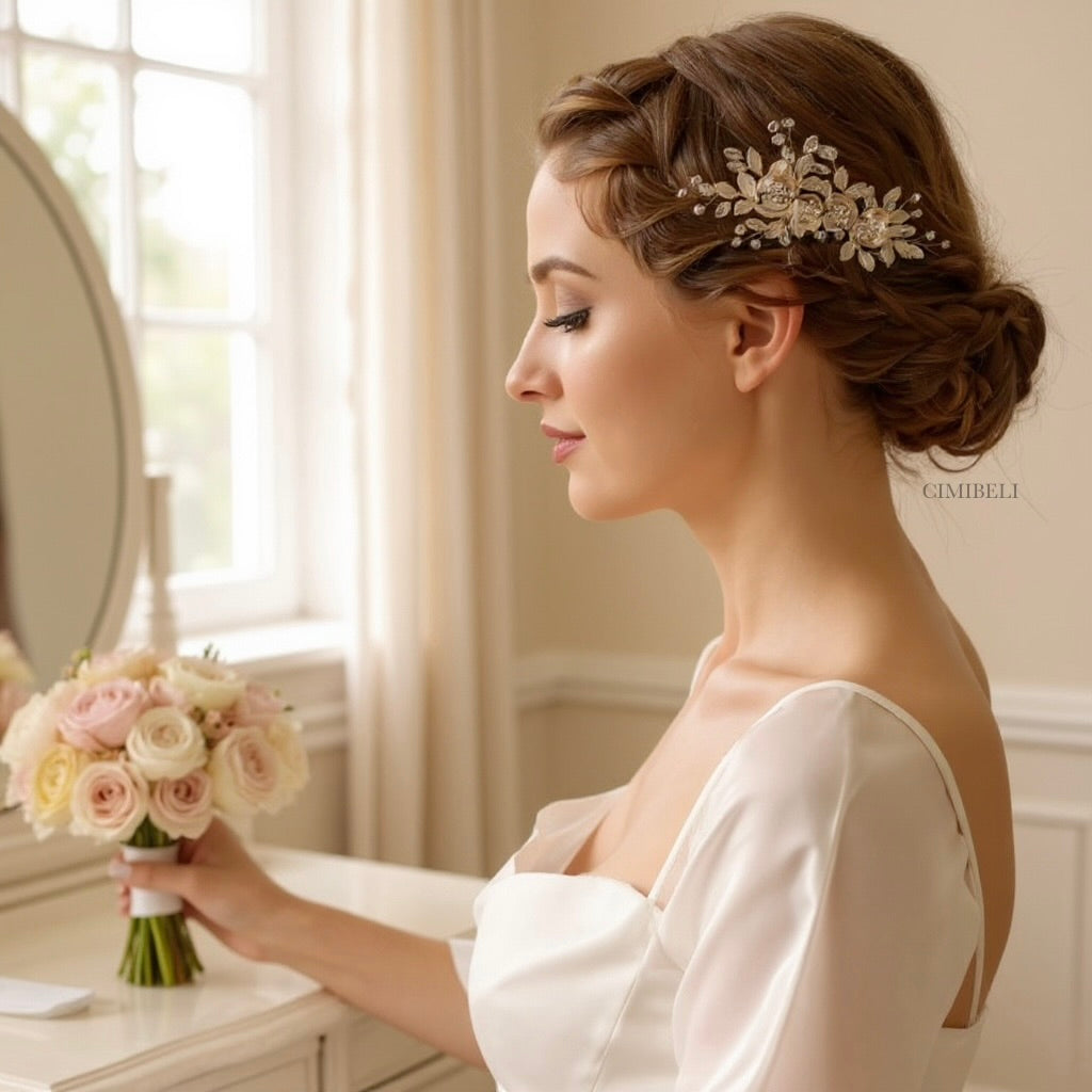 Élégance et luxe : Le peigne en cristal apporte une touche de luxe à votre coiffure de mariage, en mettant en valeur votre beauté naturelle.