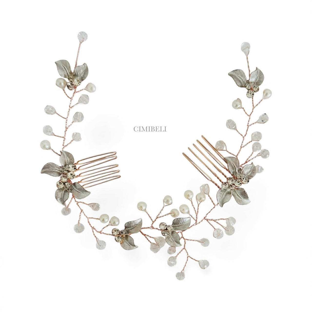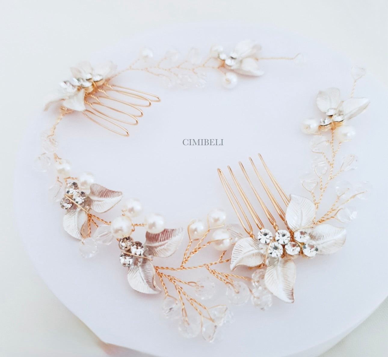 Accessoire de Cheveux avec deux peignes en or rose et Zirconiums - Artisanat Élégant pour Mariées