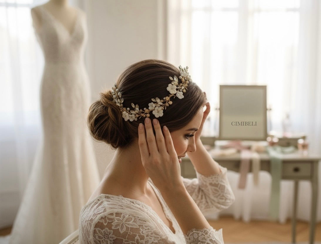 Ce bijou de cheveux apporte une touche romantique, élégante et raffinée à votre look, que ce soit pour votre mariage, vos fiançailles ou toute autre occasion spéciale.