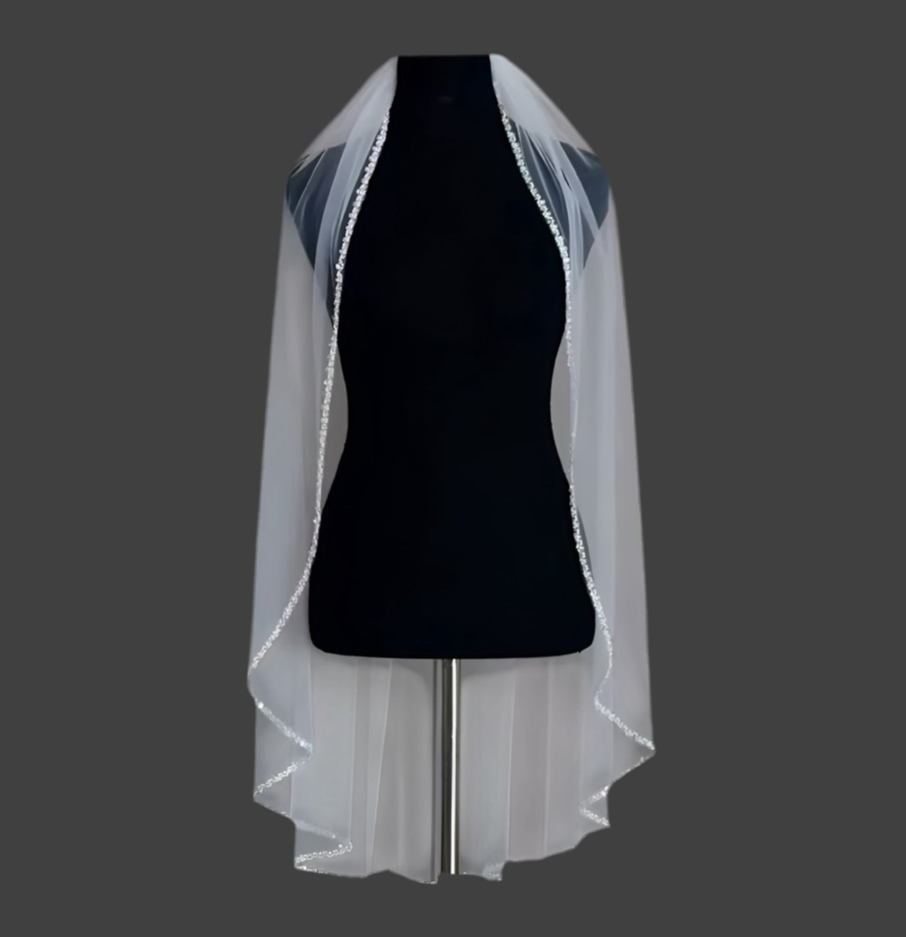 Sublimez votre tenue avec un voile aussi unique que votre amour ! Confectionné à la main dans un tulle français délicat , ce voile est minutieusement orné de perles scintillantes , ajoutant une touche de magie et d'élégance intemporelle à votre look de mariée.
